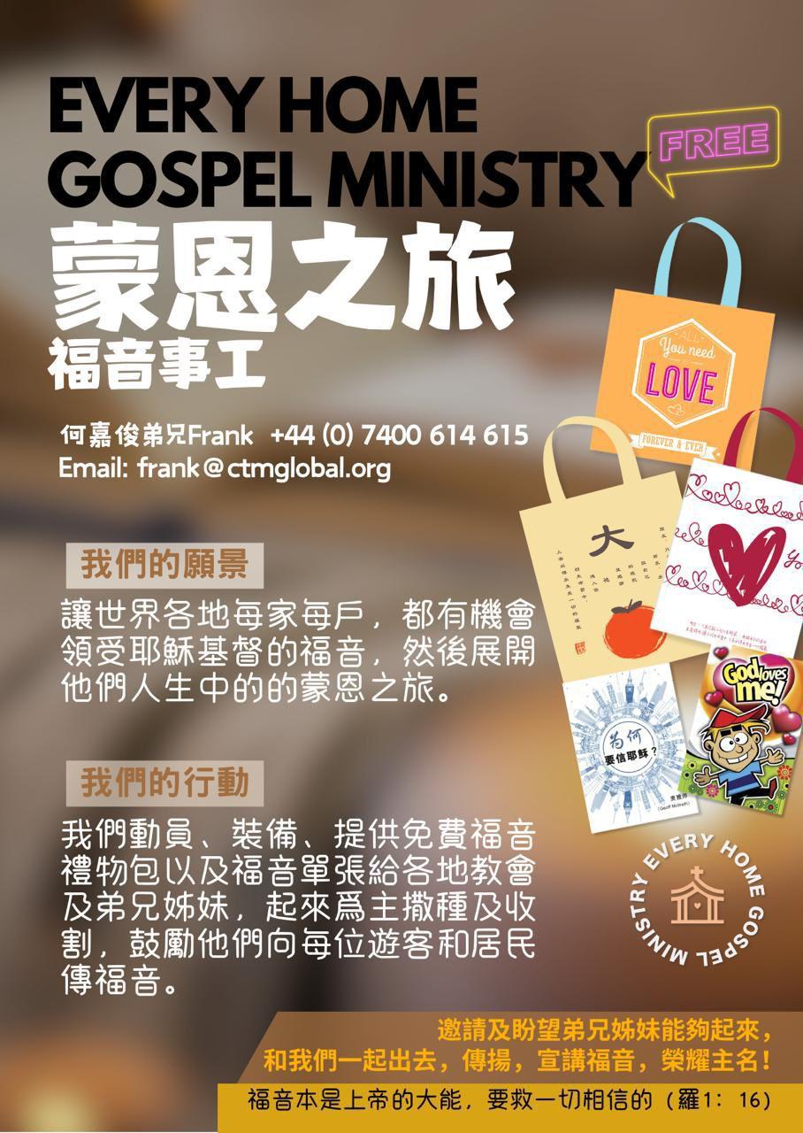 我們相信教會存在的目的是裝備眾聖徒,活出基督的見證,傳揚天國的福音,完成主的大使命。